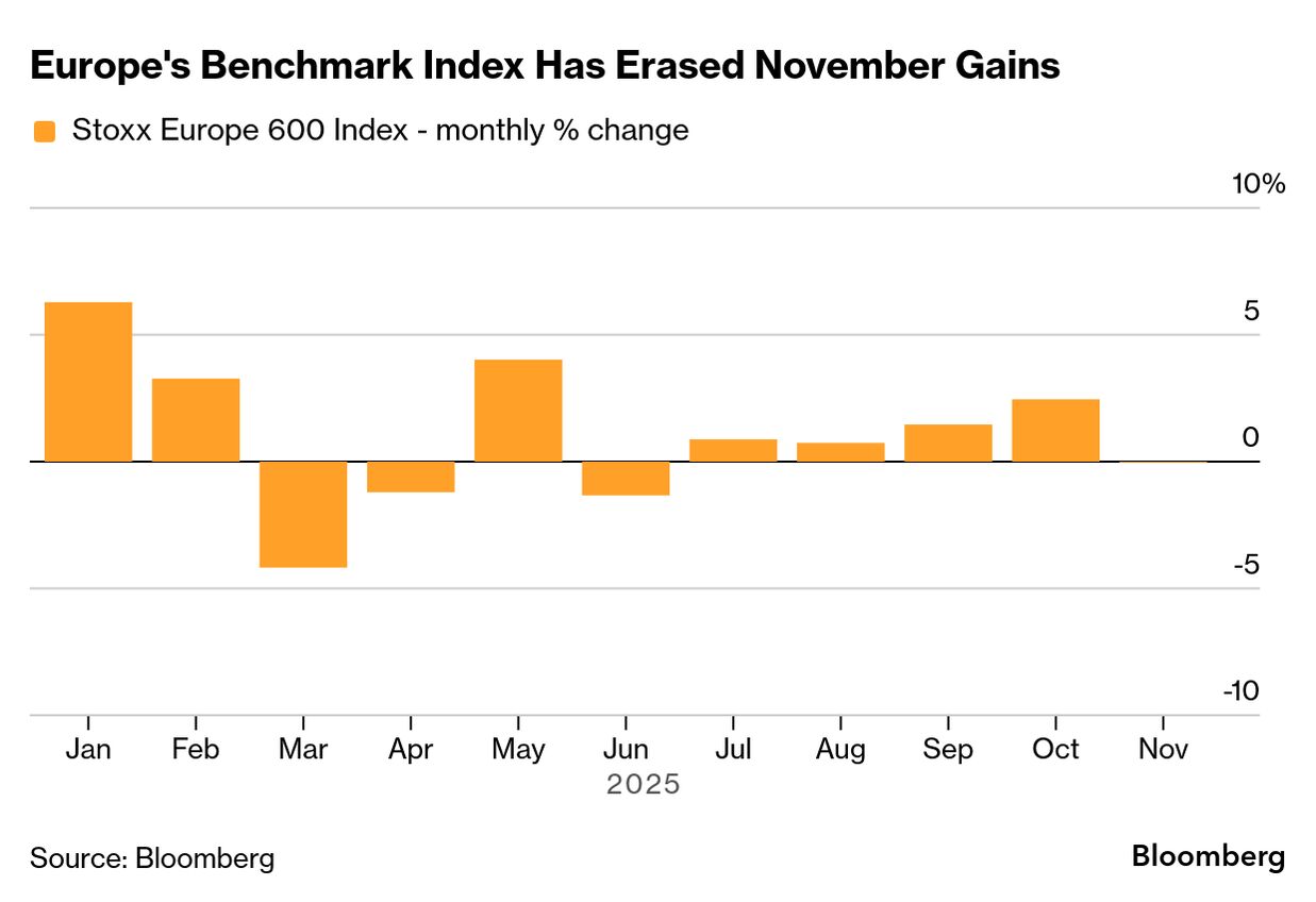 18日の欧州株式市場は売り優勢となり、指標のストックス欧州600指数は8月以来の大幅安となった。エヌビディアの決算や米経済指標の発表再開を控え、投資家は高リスク資産を敬遠した。