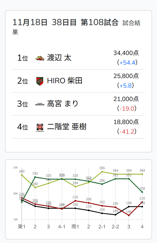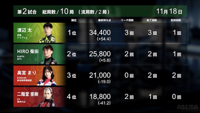 【11/18 Mリーグ2025-26 第2試合結果】着実なアガリを重ねた渡辺太がトップを獲得!ドリブンズが巻き返してチームスコアをプラス圏に!