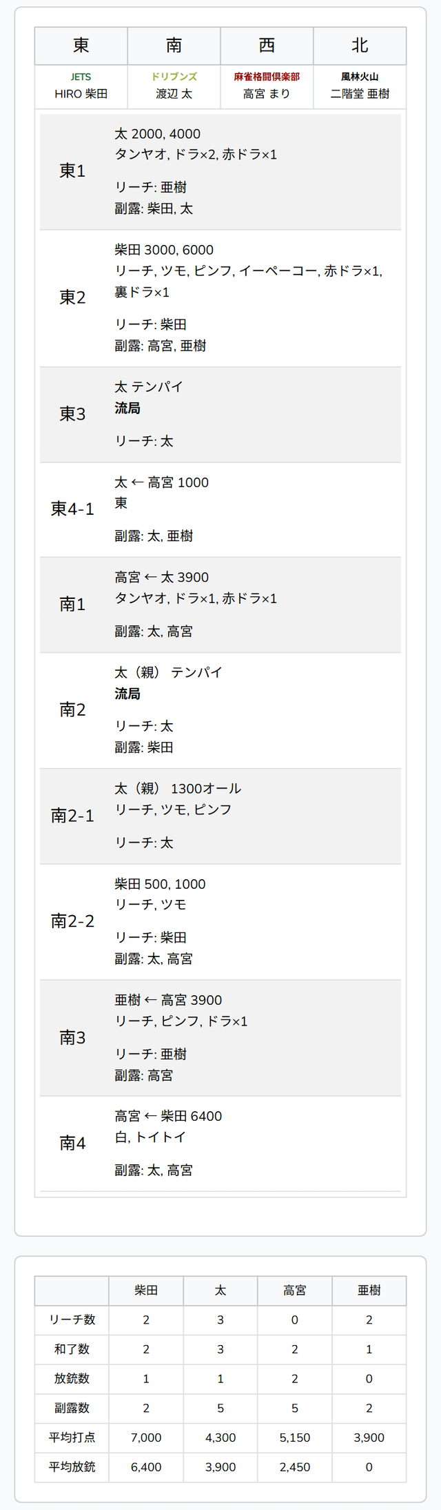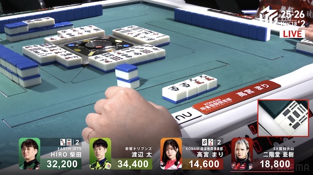 をつかみ、高宮がロンアガリ。6400となって、高宮は3着に浮上して終局となった。