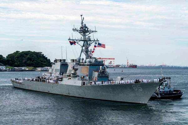 約10年間に及んだ米第7艦隊での前方任務を終え横須賀港を離れるミサイル駆逐艦「ベンフォード」(9月25日、米海軍のサイトより)