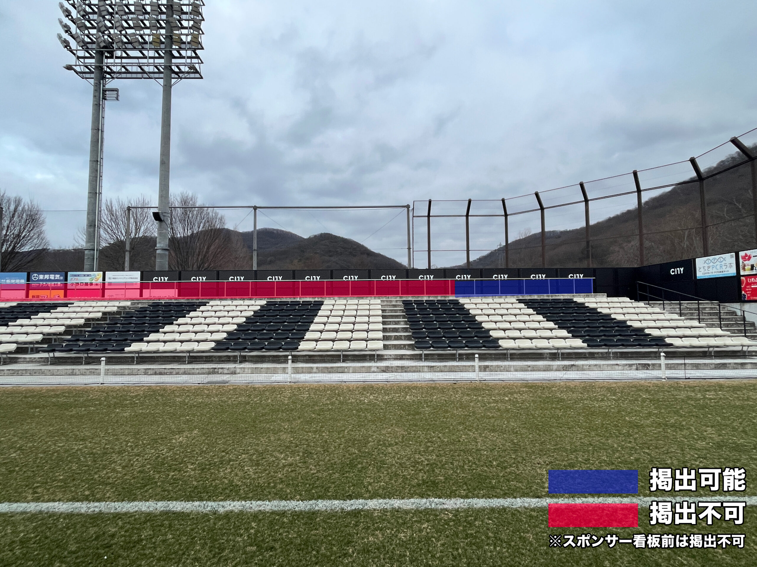 ・ゴール裏の横断幕は、ネットに貼り付け掲出してください。掲出用として脚立を準備しております(4台予定)。