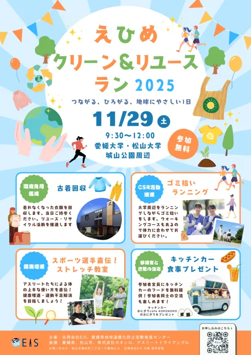2025年11月29日(土)、愛媛大学や城山公園のまわりで、地球にやさしいイベント「えひめクリーン&リユースラン2025」を開催します!