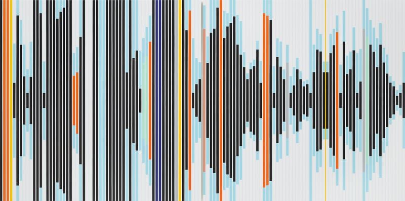 サラ・モリス 《社会は抽象的であり、文化は具体的である [サウンドグラフ]》2018年 家庭用アクリル塗料 カンヴァス 214×428cm 大阪中之島美術館 © Sarah Morris