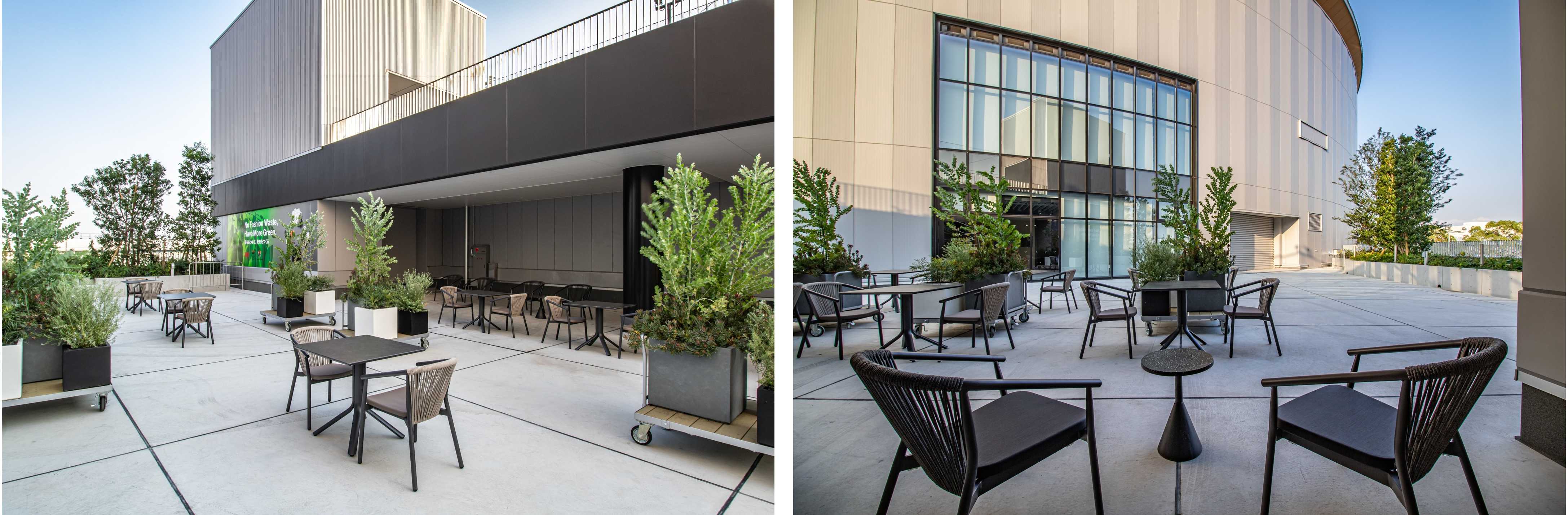 アリーナ3階メインゲート横にある屋外テラス空間です。イベント前後のひとときを、自然のぬくもりを感じながら会話や飲食を楽しんだりと、それぞれが自由に思い思いの時間を過ごせる、誰もが心地よく過ごせる空間です。