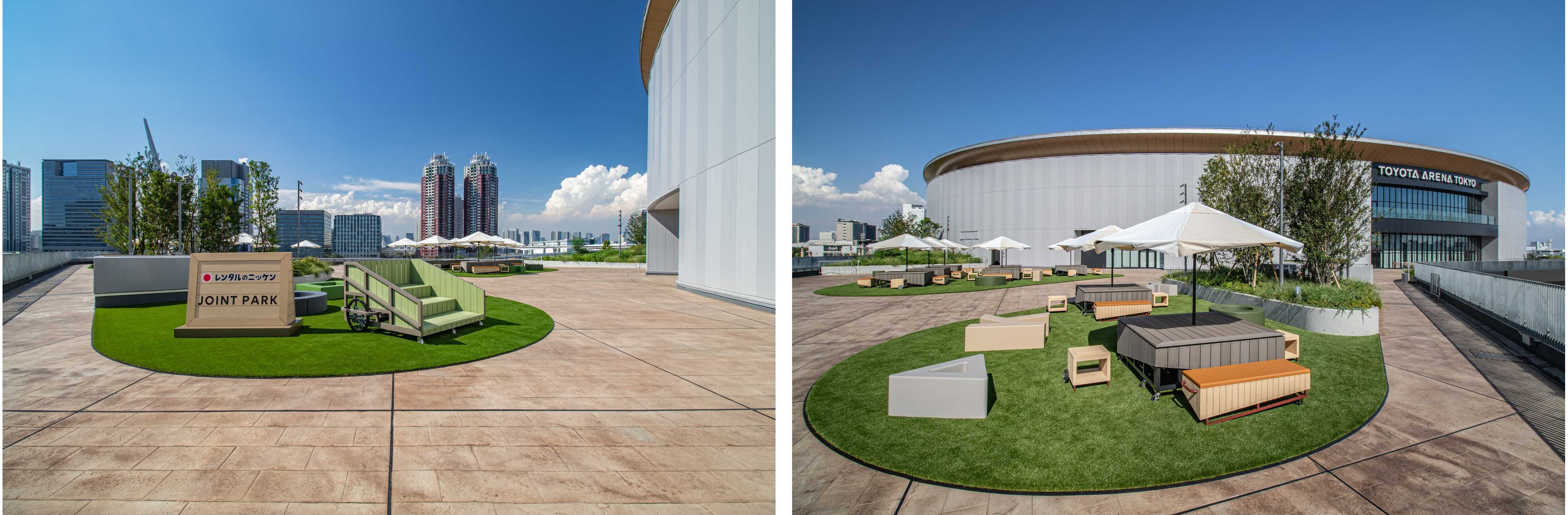 当社はトヨタアルバルク東京、スポンサー企業と共に屋外空間のあり方を検討する企画段階から参画し、TOYOTA ARENA TOKYOの「adidas SPORTS PARK」、 TOYOTA ARENA TOKYOシンボルモニュメント、「レンタルのニッケン JOINT PARK」、屋外テラス空間「CIRCULAR FARM SOUTH GARDEN」、adidas SPORTS PARK前階段「MEMORIAL BRICKS」を担当しました。アリーナやスタジアムで携わってきた内部空間の知見を活かし、地域に開かれ人々がつながる屋外空間や、アリーナの新しい楽しみ方の創出に取り組みました。