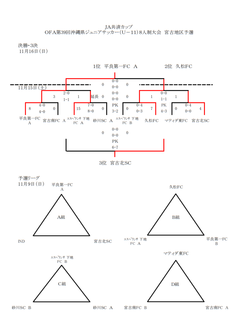 結果参照:沢岻ティーダキッズ応援ブログ、神森JFC、港川ファイヤーズFC、