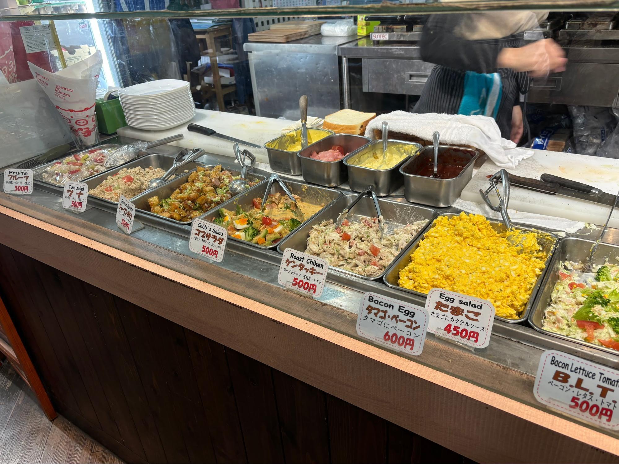 もう一つのショーケースにはホットサンド用の具材も並んでいて、こちらもとても美味しそうでした。