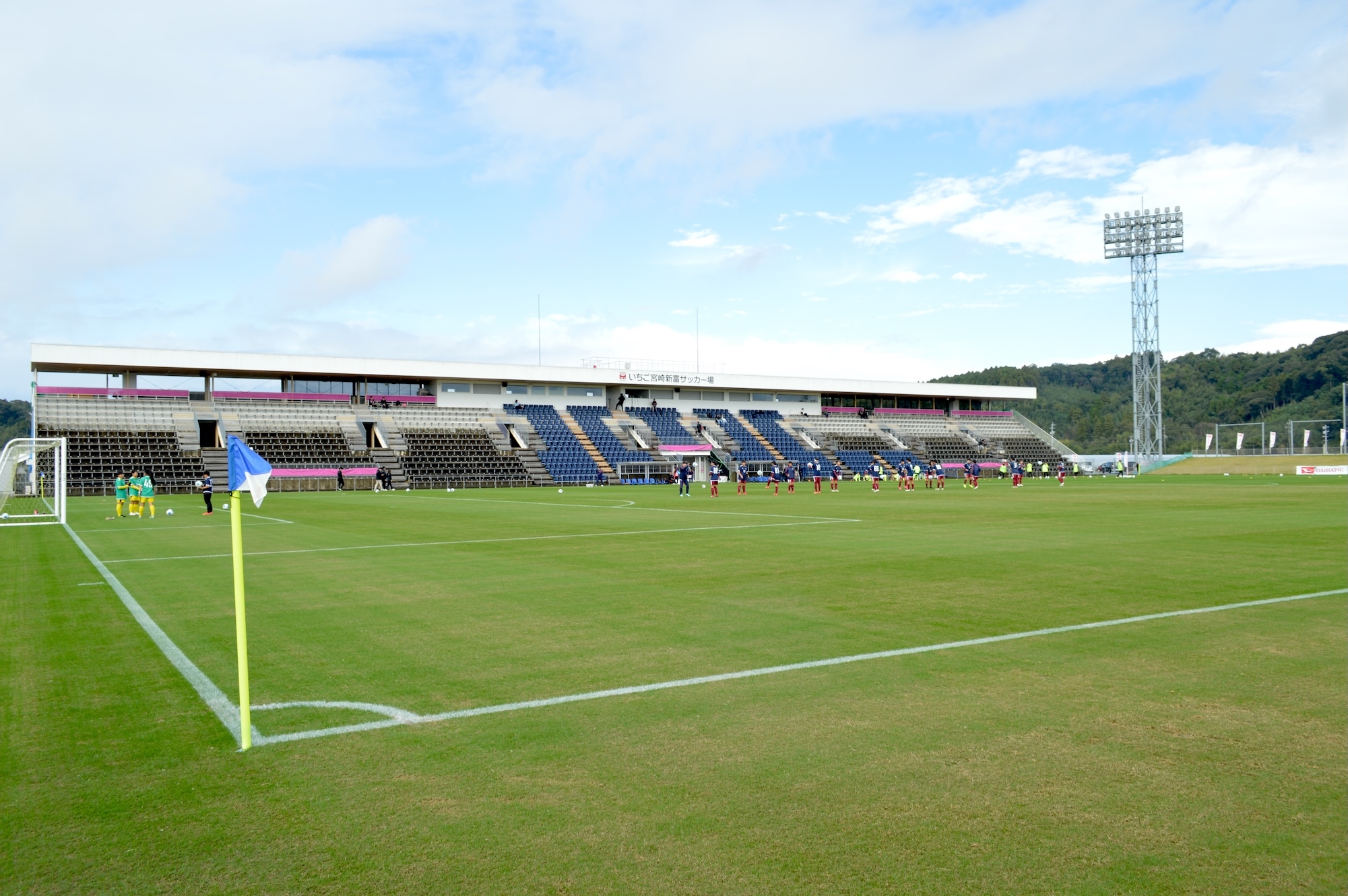 決勝戦が行われたのは、天然芝が美しい新富町の「いちご宮崎新富サッカー場」。試合前には雨もやみ、コンディションも良好に