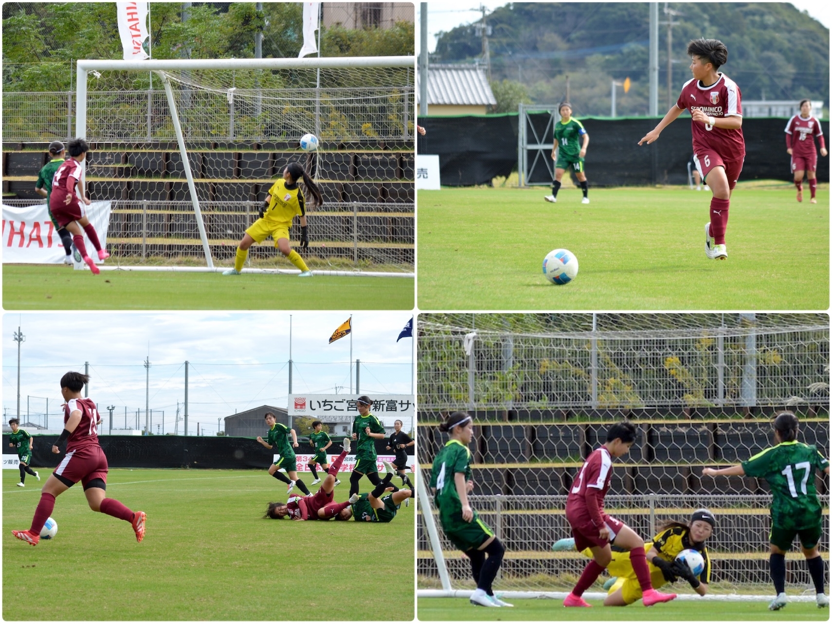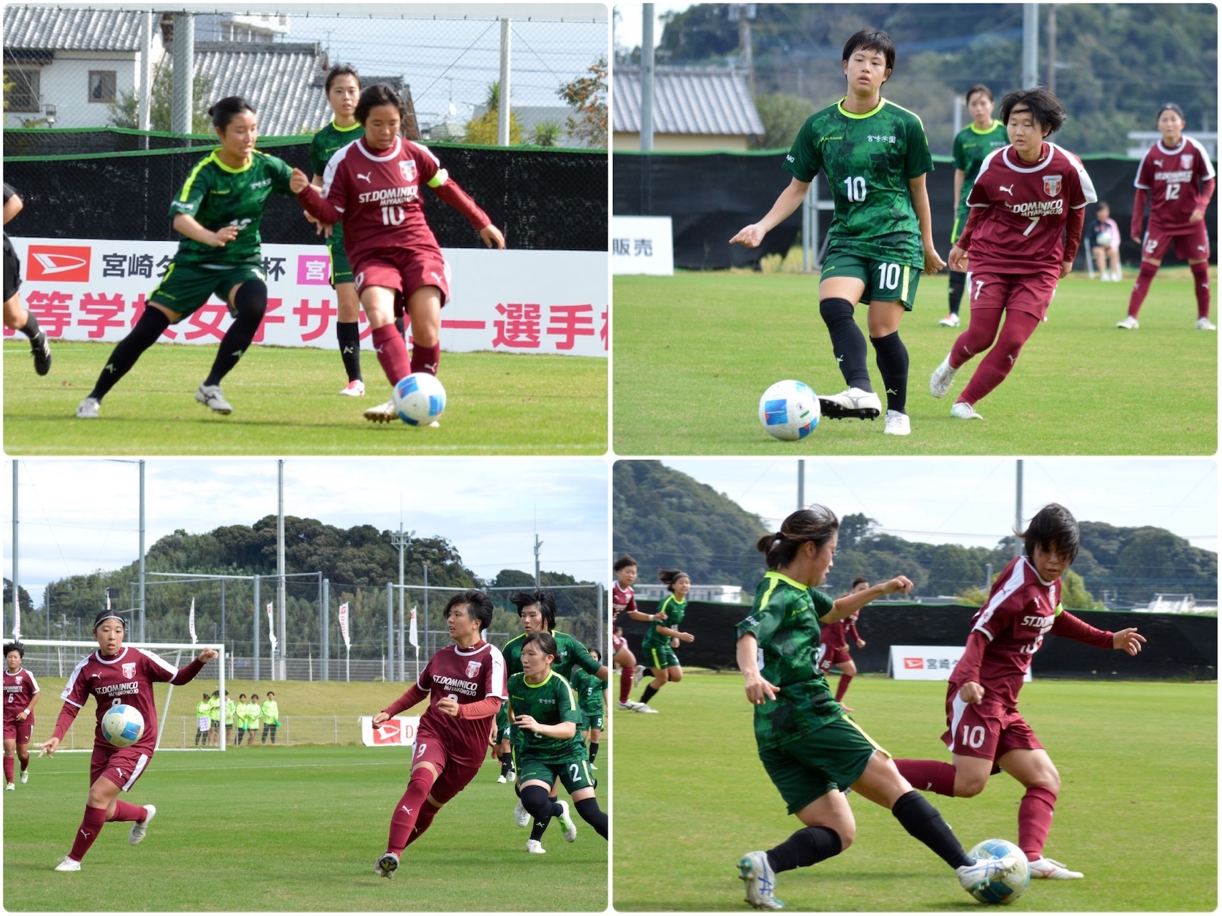 宮崎学園の攻撃に都城聖ドミニコ学園も必死に食らいつきます。選手同士が激しくぶつかる場面も