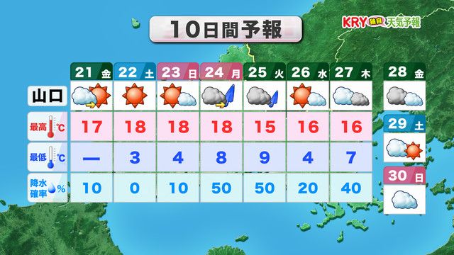 土曜日、そして日曜日と安定した、お出かけ日和の晴天。この土日も昼間は心地よい一方で、朝晩は強い底冷えになることに、ご注意ください。月曜日の振替休日から連休明けの火曜日にかけては、天気がぐずつくタイミングがあるでしょう。