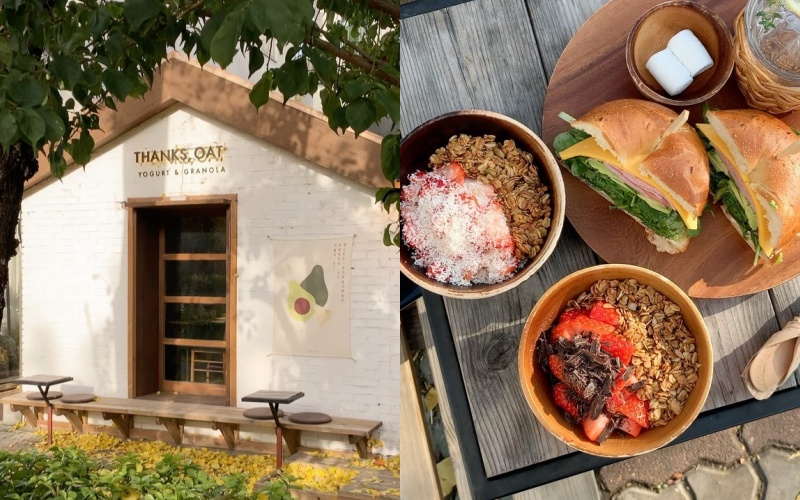 グリークヨーグルトやサラダなどのビーガンメニューを中心に提供しているThanks OAT。旅行中でもヘルシーな食事を取り入れたい方にぜひ訪れてほしいカフェの一つです。人気メニューの自家製ヨーグルトボールは、ザクザクのグラノーラと新鮮なフルーツ、ナッツ、ハチミツがトッピングされて色々な食感が楽しめ、栄養も満点です。他にもアサイーボウルやサンドイッチなどもあるので、ここで朝食をとれば、食後すぐに延南洞の散策を楽しめます。