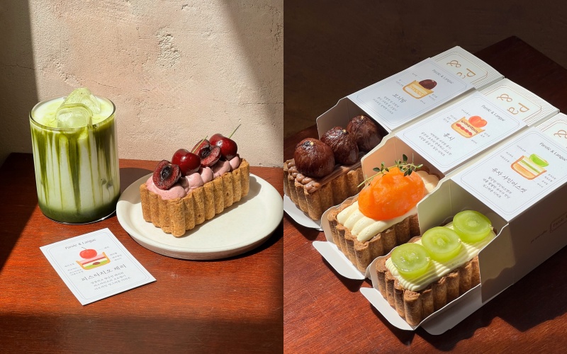 旬のフルーツや野菜を使用したタルト専門店のParole&Langueは、韓国で話題沸騰中!店内は白い壁と木製の家具を基調にしたシンプルなデザインで、落ち着いた雰囲気がとても心地よい空間です。席数は多くありませんが、テイクアウト用の箱は可愛らしく、お持ち帰りしていく人もたくさんいます。タルト生地は何層にも重なりサクサクで、中のフィリングもたっぷり。フレーバーは、チョコバナナ、栗、チーズケーキ、トウモロコシ、バジルトマトなど、他にも季節限定でマスカットもあります。中でも一番人気がトウモロコシ味で、韓国でトウモロコシのスイーツをまだ試したことがなければ、ぜひ一度食べてみてください!閉店前に完売することがあるので、気になるフレーバーがある方は早めの時間に行くのがおすすめです。