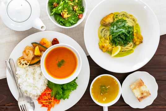 ココナッツベースのオリジナルカレーに、香ばしいガーリックシュリンプと旬の冬野菜をたっぷりトッピングしました。