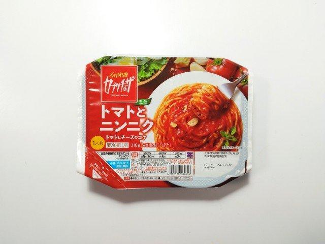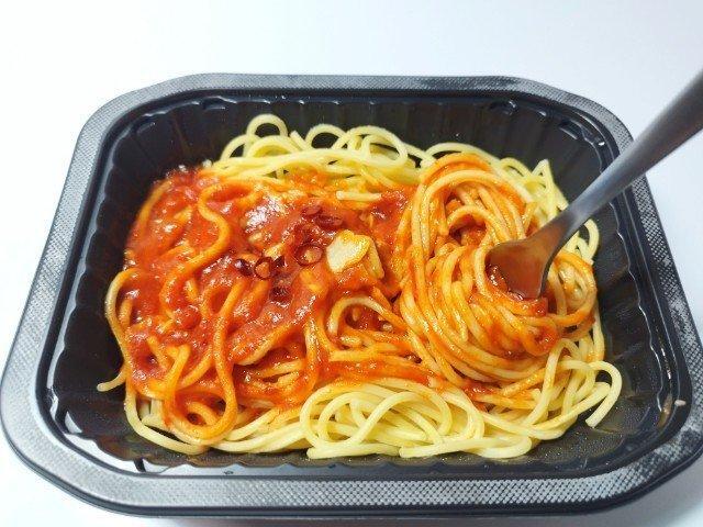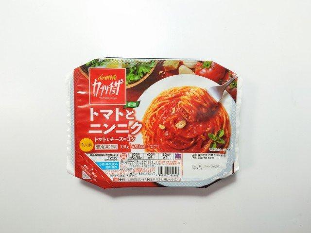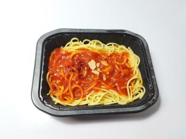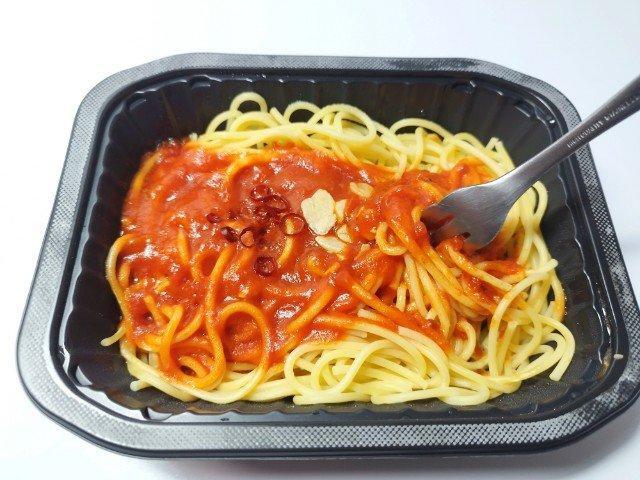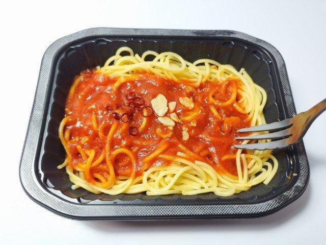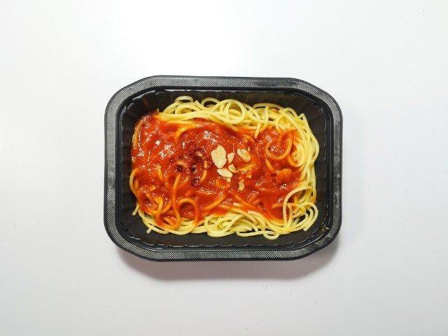 そんなトマトとニンニクのパスタですが、まず温めてフタを開けた瞬間に広がるにんにくの香りで、一気に食欲をかき立てられます。