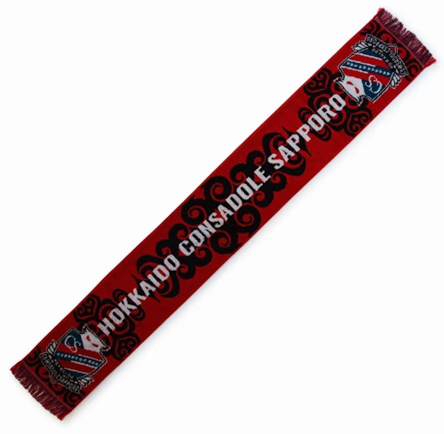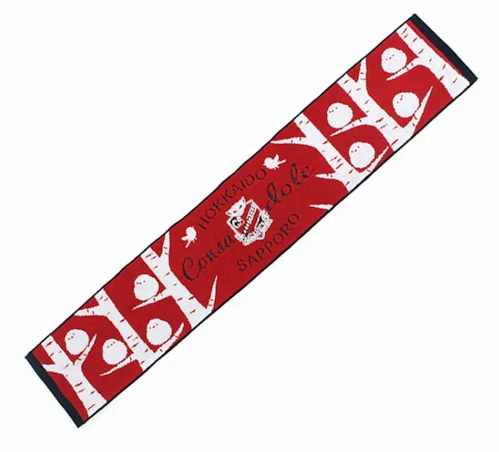 人気のフリンジ付きタオルマフラー。今年のユニフォームにも使用しているアイヌ文様デザインです。
