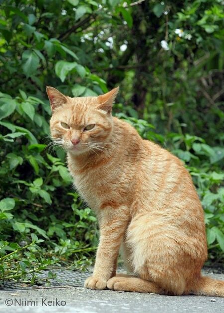 こちらの赤トラ猫も表情が険しくなっています。だいたい猫は雨が好きではないですよね。