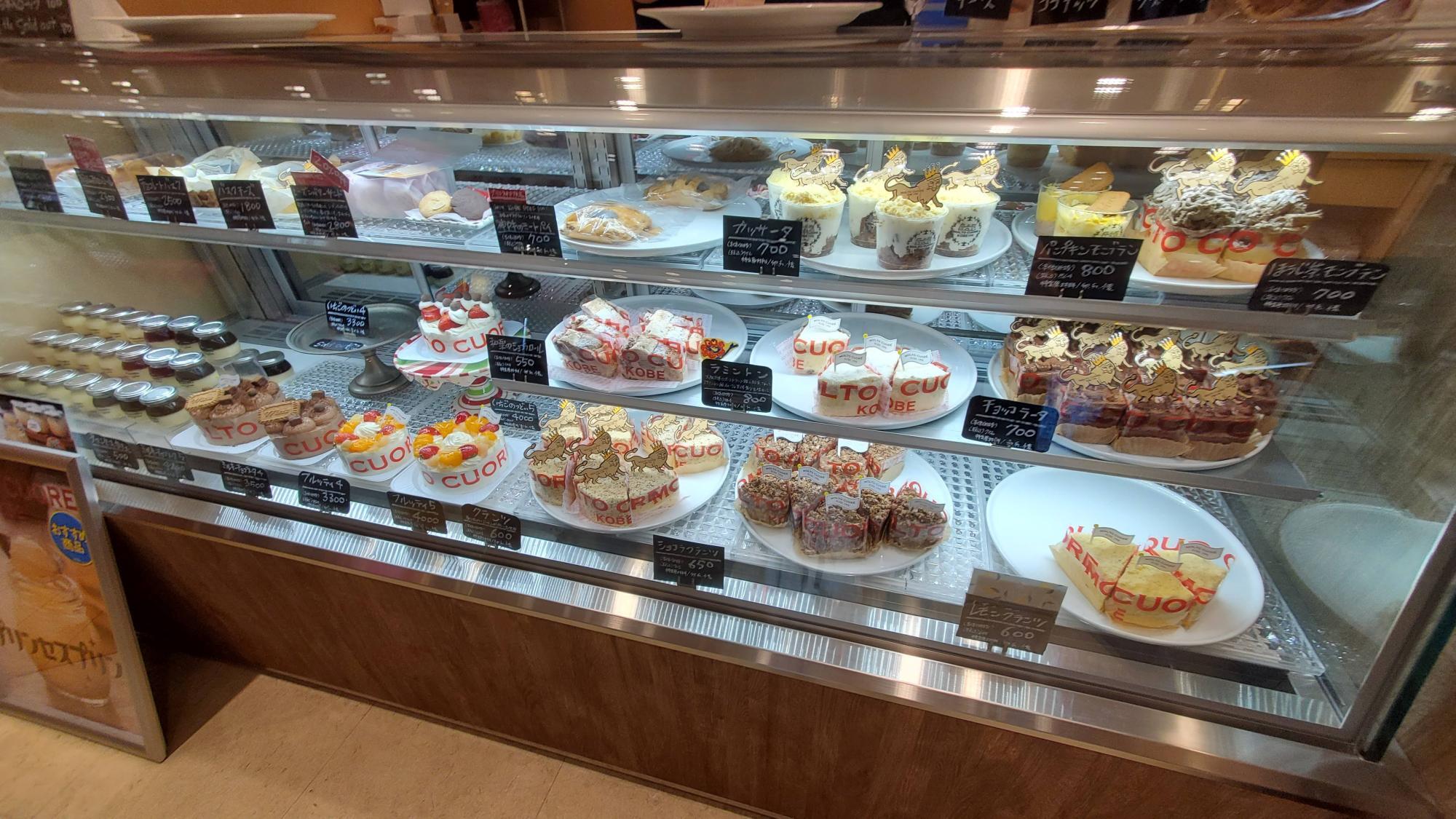 場所はJR神戸駅改札前の「プリコ神戸」。左側の出入口から入ってすぐのゴンチャロフやモロゾフのお菓子が売られているところです。「モルトクオーレ」の本店は西区にあり、六甲道にも店舗があります。ラミントン以外にも美味しそうなボリューミーなケーキがたくさんあったので、ぜひご一緒に。