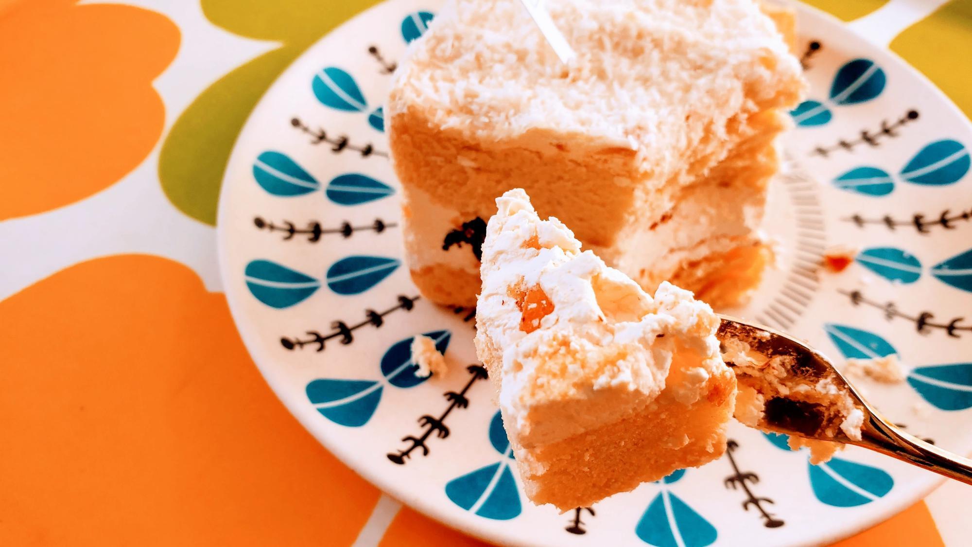 「ラミントン風スイーツ」とあるように、ラミントンとは別物の「ココナッツ風味を感じられるバタークリームとドライフルーツのケーキ」として食べてみると、バターの味が濃厚でフルーツも味わえるし、これはこれで美味しいケーキです。