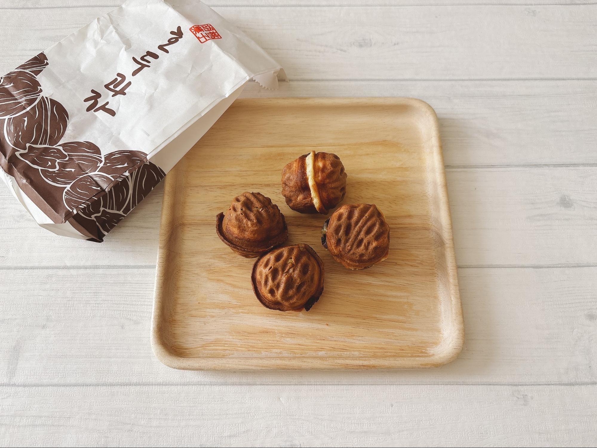 韓国では昔から親しまれているお菓子で、胡桃の形をしているのが特徴です。