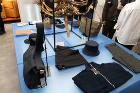 店内では、アイコン的存在のデイパック「〈CITY/DS〉Day Pack」(3万7400円)をはじめ、ヘルメットバッグをモチーフにした「〈CITY PLUS/THE HELMET〉Tote Bag」(3万8500円)、スマホや財布、パスポート、イヤフォンなどを分類して収納できるほか、洗濯機での丸洗いにも対応するジャケット「〈Essential Jacket〉No.60433」(3万8500円)などを販売。スカートなど直営店限定アイテムも取り扱う