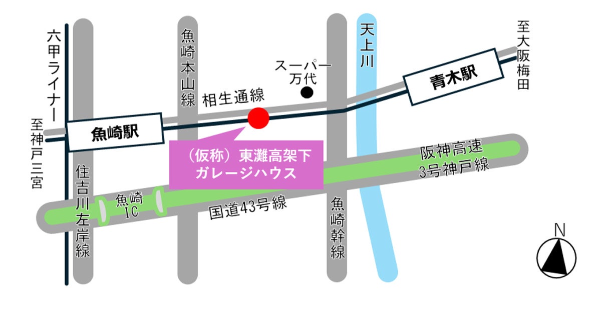 本物件は、建築ブランド「DAYTONA HOUSE×LDK」を手掛ける株式会社LDKとの共同企画で、魚崎駅へ徒歩で約6分、また、阪神高速3号神戸線の魚崎出入口まで車で約3分という、利便性の高い都市部に位置しています。愛好家による車・バイクのガレージ付アパートとしての利用のほか、セカンドハウスとしての利用やオフィス、サービス店舗、趣味の部屋としての利用など、さまざまな使い方が可能な“秘密基地”のような空間です。
