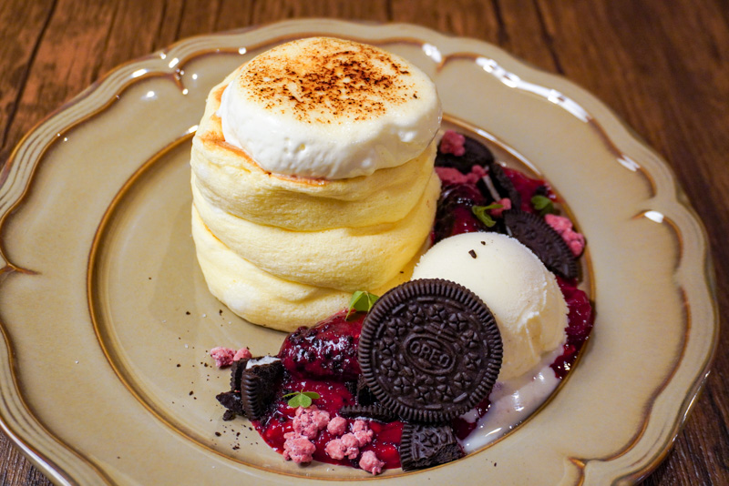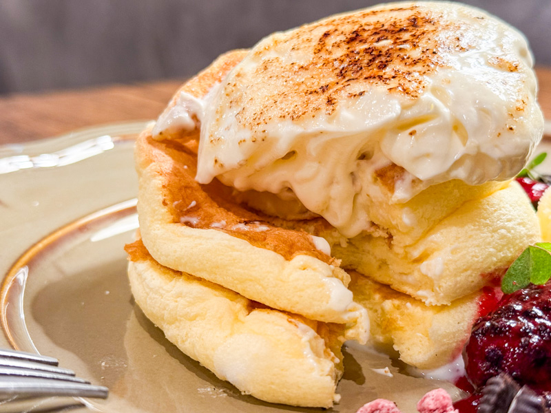 さまざまなお店のパンケーキを食べ歩くなかで、「見た目はスフレパンケーキだけど、クラシックなパンケーキの要素がプラスされた、全く新しいパンケーキができないか」と、オムライスのお店などを展開する傍ら、密かに試作を重ねてこられたそう。