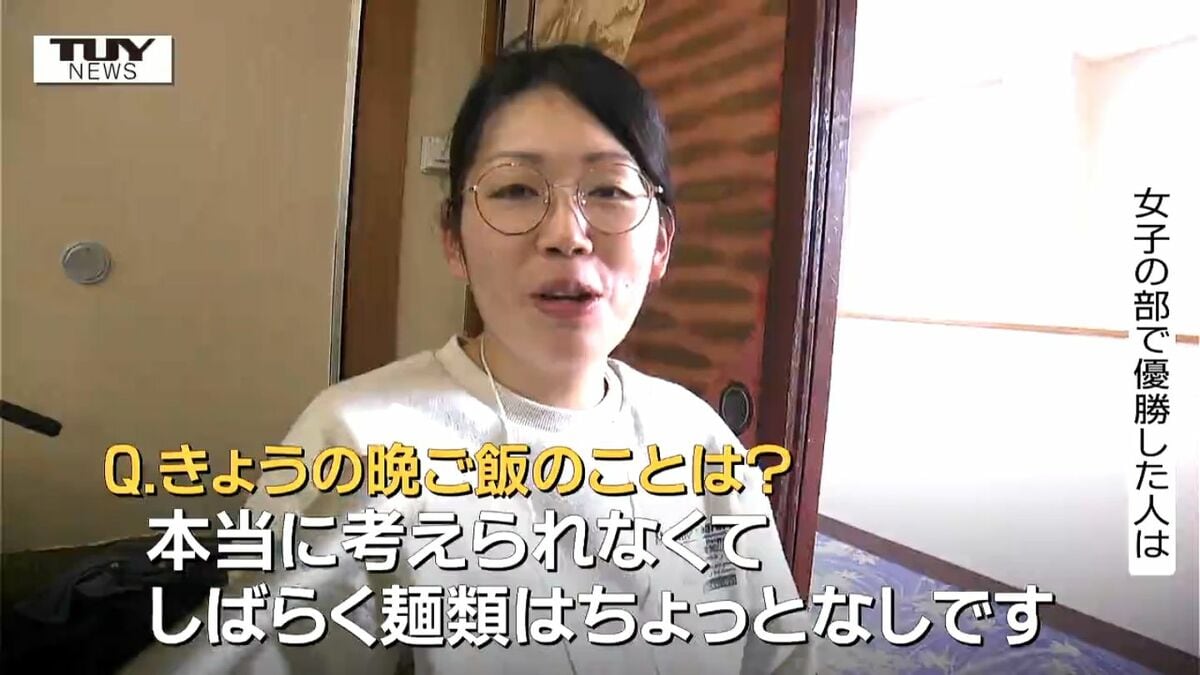 女子の部で優勝した人「110杯です。(Q晩ご飯のことは?)本当に考えられなくてしばらく麺類はちょっとなしです」
