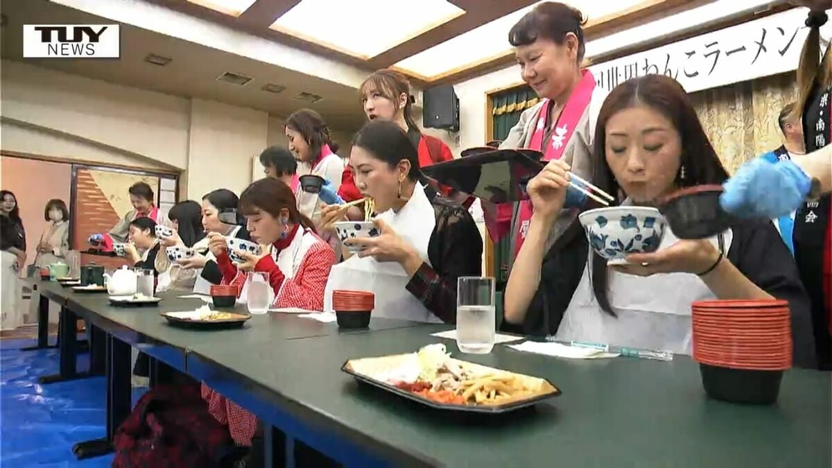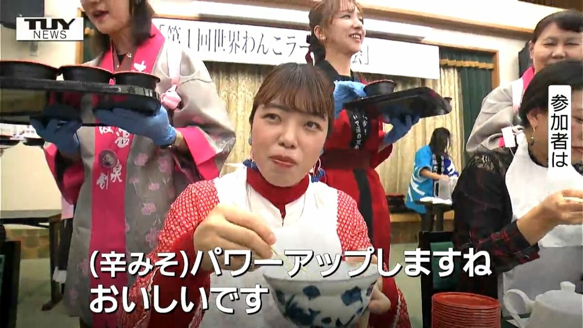 「わんこそば」ならぬ、「わんこラーメン」の世界大会がきょう南陽市で開かれ、100杯を超える大記録が次々と飛び出し盛り上がりを見せました。