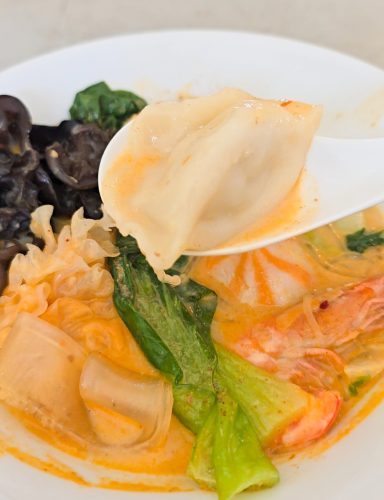 青梗菜、えび、蟹団子や白きくらげ、肉団子、水餃子など具材もたっぷり。つるんと食べやすい春雨と一緒に、最後まで飽きずに楽しめる満足度の高い一品です。