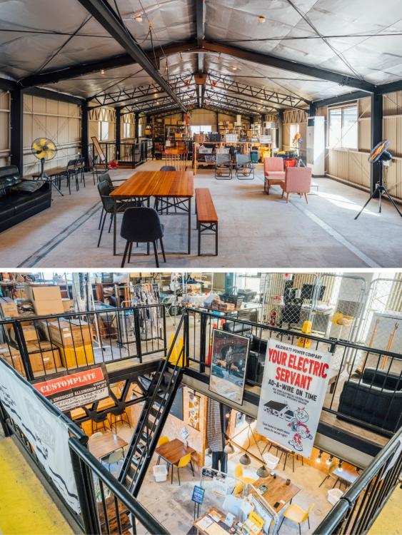 おしゃれな倉庫リノベ空間で、雑貨を見ながらワイワイ楽しめる。週替わりメニューの話題で盛り上がること間違いなし。