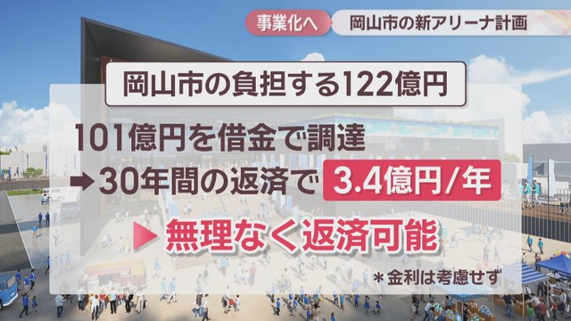 また、市が負担する122億円のうち101億円については、借金で調達します。返済期間は30年で年間の返済額は3.4億円。市は無理なく返済できるとしています。
