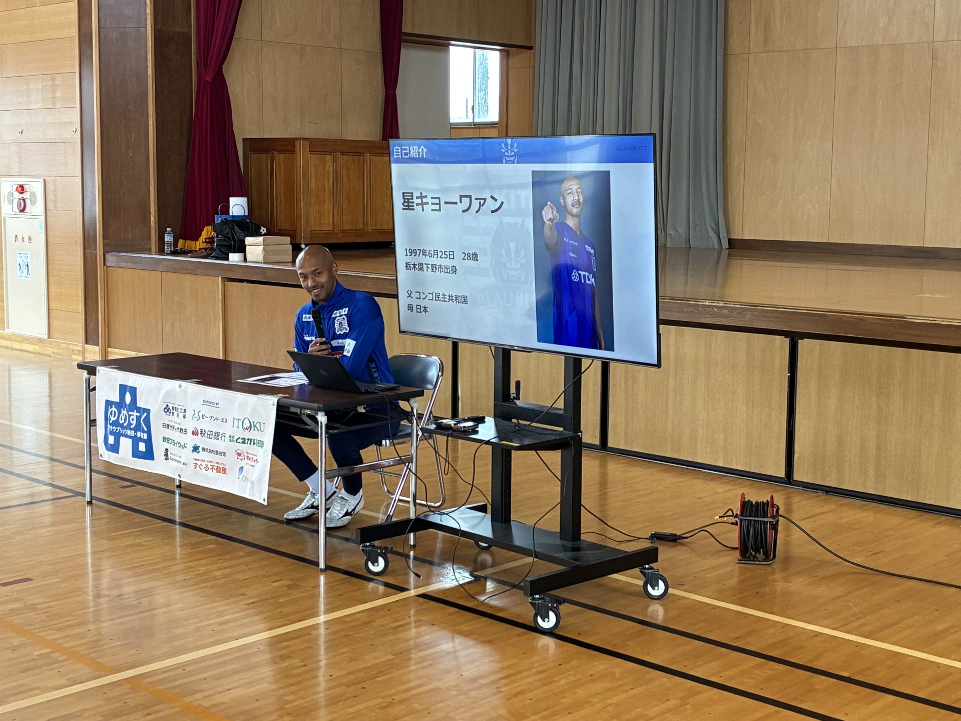11月20日(木)、秋田市立牛島小学校の6年生47名を対象に、DF39 星キョーワァン選手が「ゆめすく」を行いました。