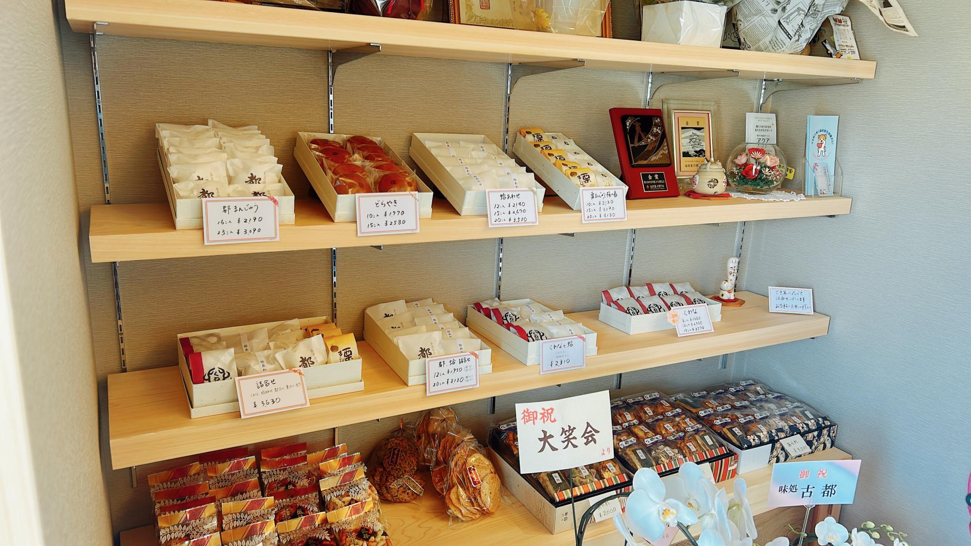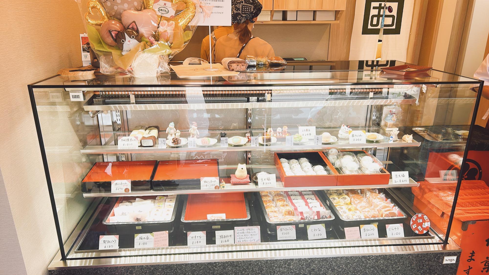 店舗に入ると正面には大きなショーケースがあり、上生菓子や羊羹、まんじゅう、どら焼きなどが並んでいます。