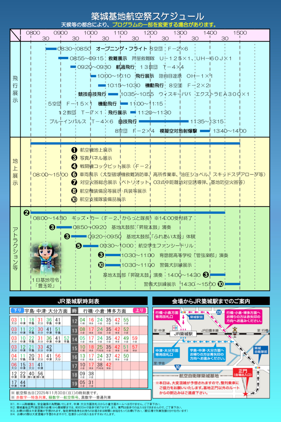 当日のスケジュール、JR築城駅からの会場までの道順と時刻表