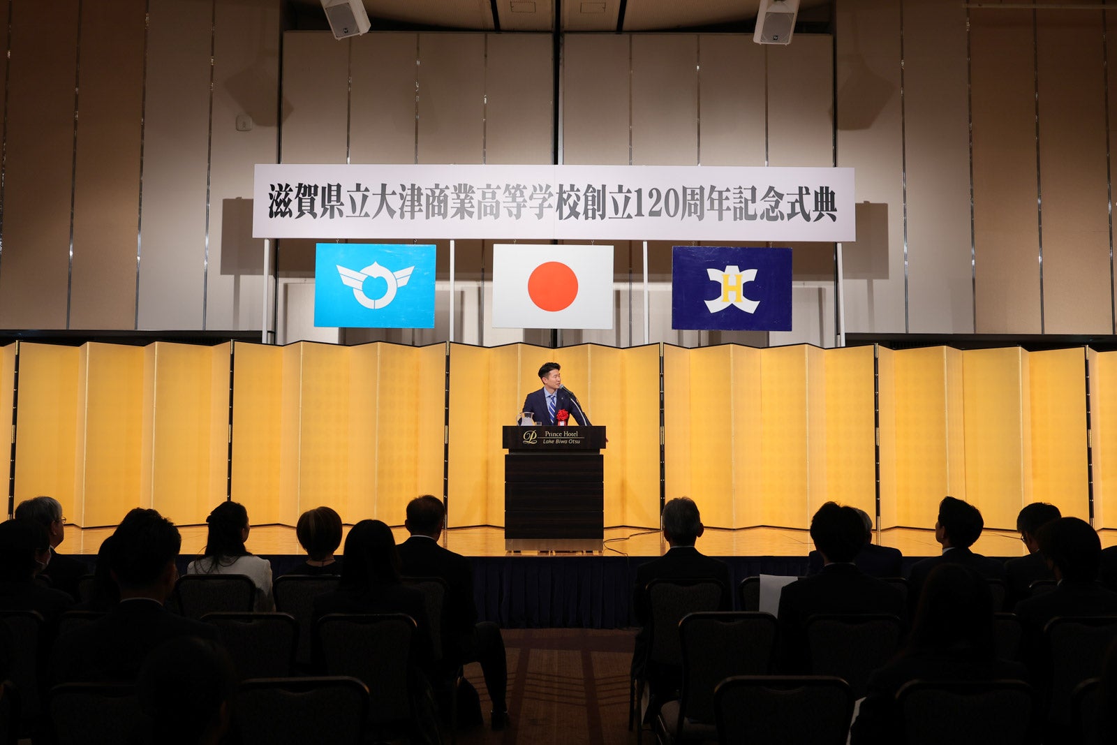 11月22日に大津市内で開催された滋賀県立大津商業高校の創立120周年記念式典にて、株式会社滋賀レイクスターズ(滋賀レイクス)代表取締役社長の原毅人が登壇し、在校生や卒業生、地元の経済関係者ら約1200名の前で記念講演を行いました。