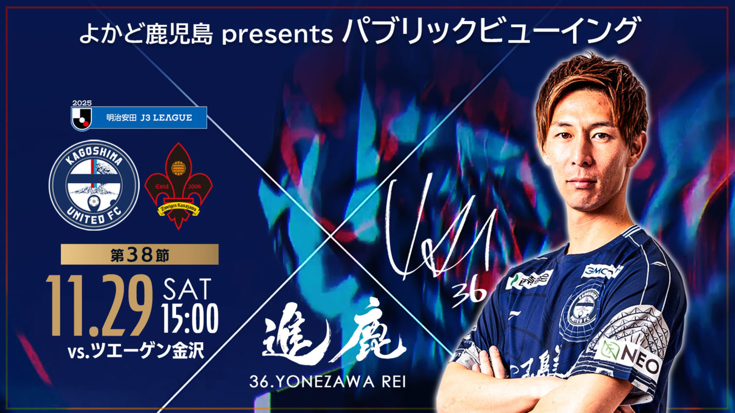 11月29日(土)2025明治安田J3リーグ第38節のパブリックビューイングを、よかど鹿児島にて実施します!パブリックビューイングご観戦の先着100名様に、よかど鹿児島館内で使用できる「商品券200円分」をプレゼント!試合の前後は、よかど鹿児島でのグルメやショッピングをぜひお楽しみください!