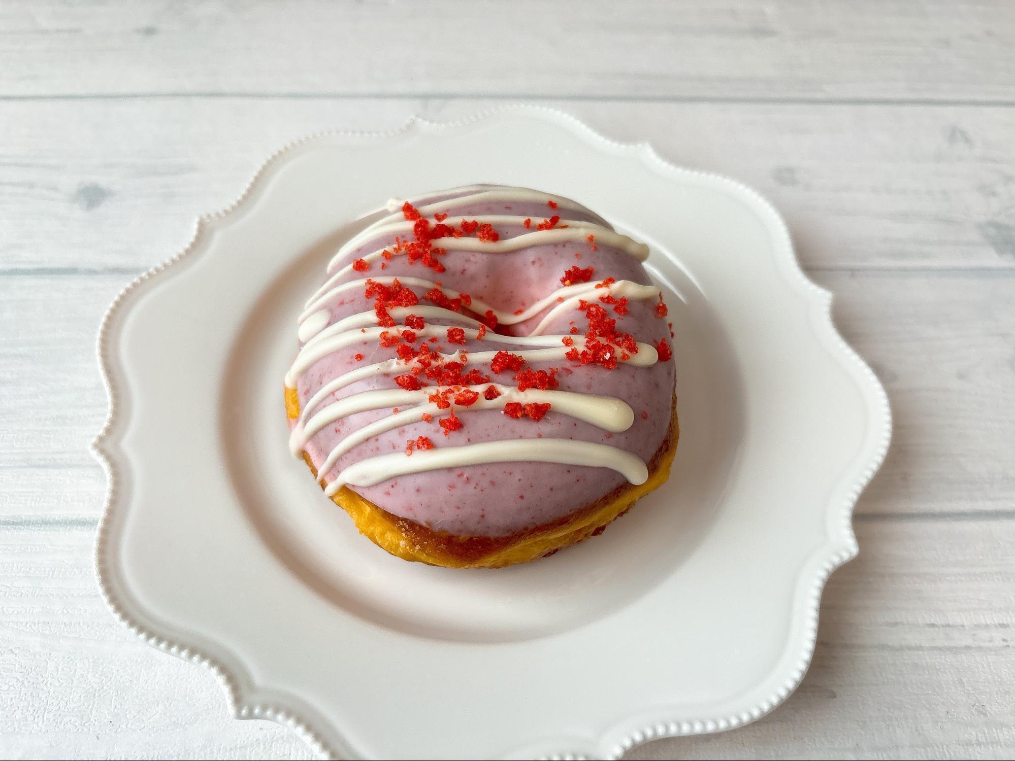 生リングドーナツ・ストロベリーは、甘酸っぱい味わいが広がります。