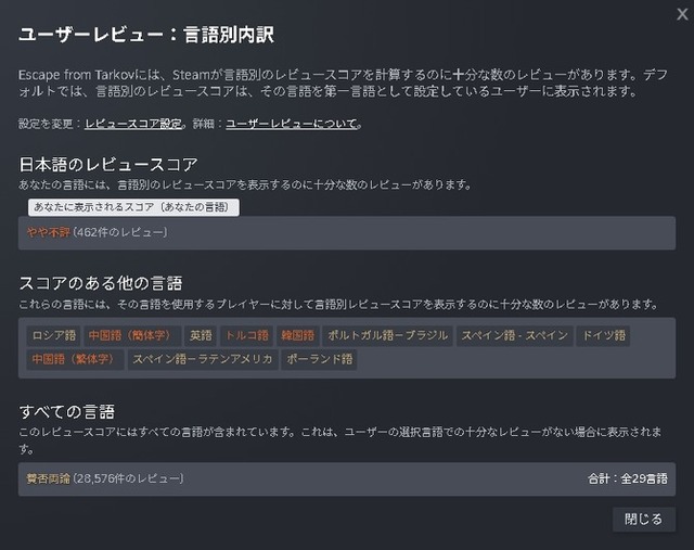 一方で日本語や中国語、韓国語圏のユーザーレビューは未だに不評の方が多く、スタートダッシュでの躓きが未だに尾を引いている模様で、今後のアップデートを通じてどれだけ失敗を取り戻せるかが気になるところ。PvPvE脱出シューターの草分けとしての意地、ぜひ見てみたいところではないでしょうか。