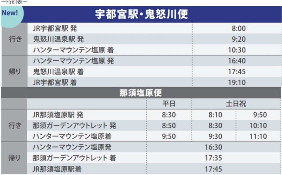 那須塩原駅・那須ガーデンアウトレット・塩原温泉経由便