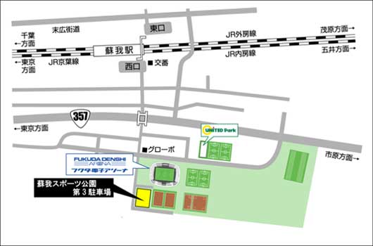 「ジェフィA駐車場」を当日販売いたします。駐車場の目印として、入口に黄色ののぼりを掲出しておりますので、そちらを目安にお越しください。のぼりが掲出されていない場合は満車となります。