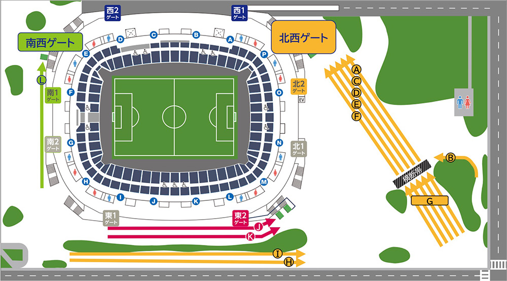 アウェイ自由席購入者のみ入場可能です。入場後、コンコースの周回及び再入場はできません。