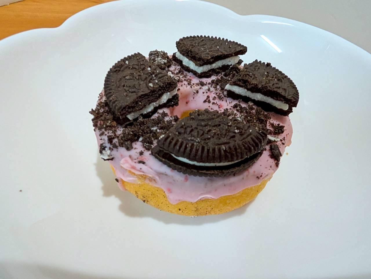 ストロベリーチョコの上にオレオクッキーが割られてくっ付いてます。