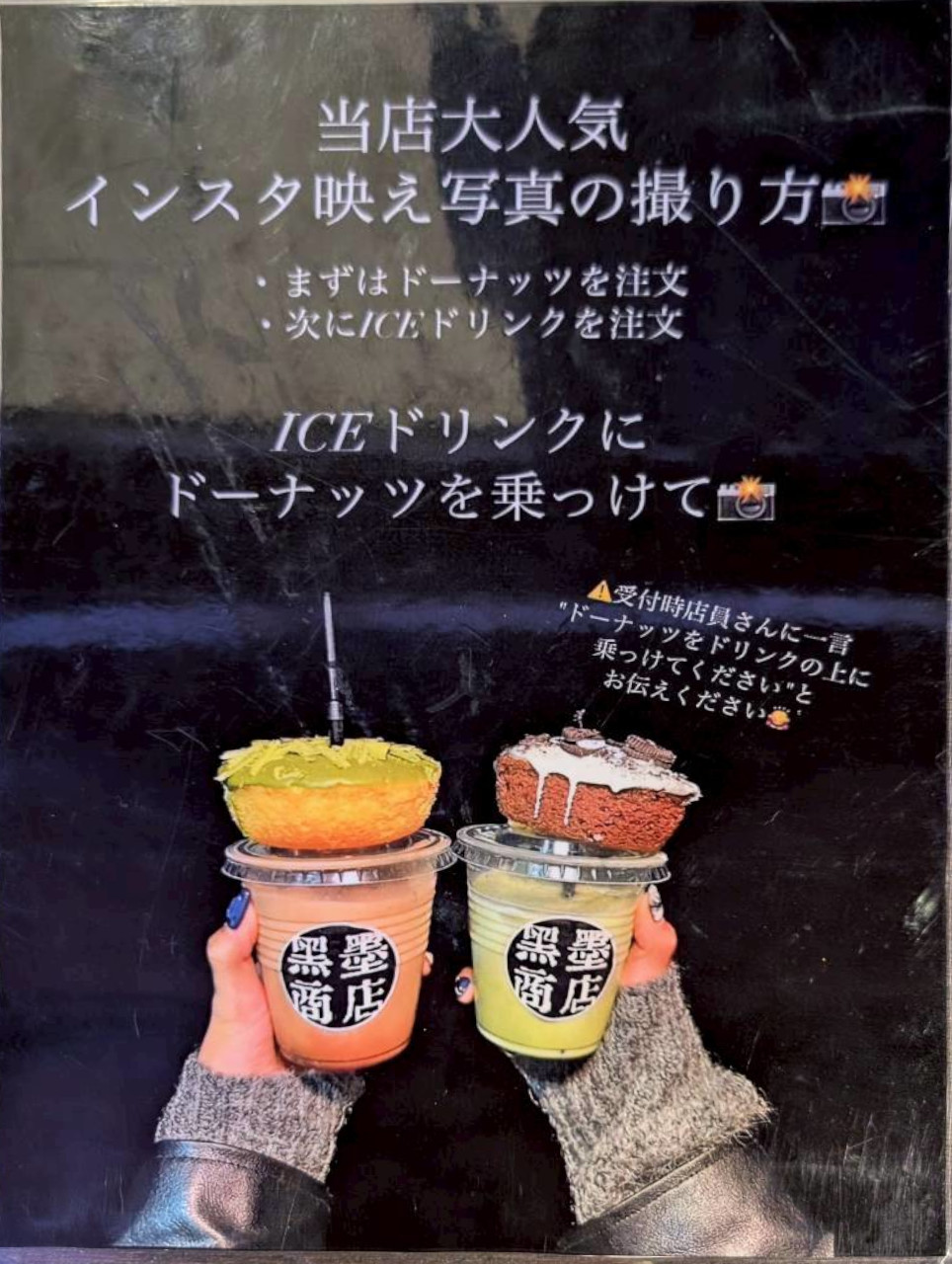 ドリンクはカップの蓋の上にドーナツをライドオンできます!