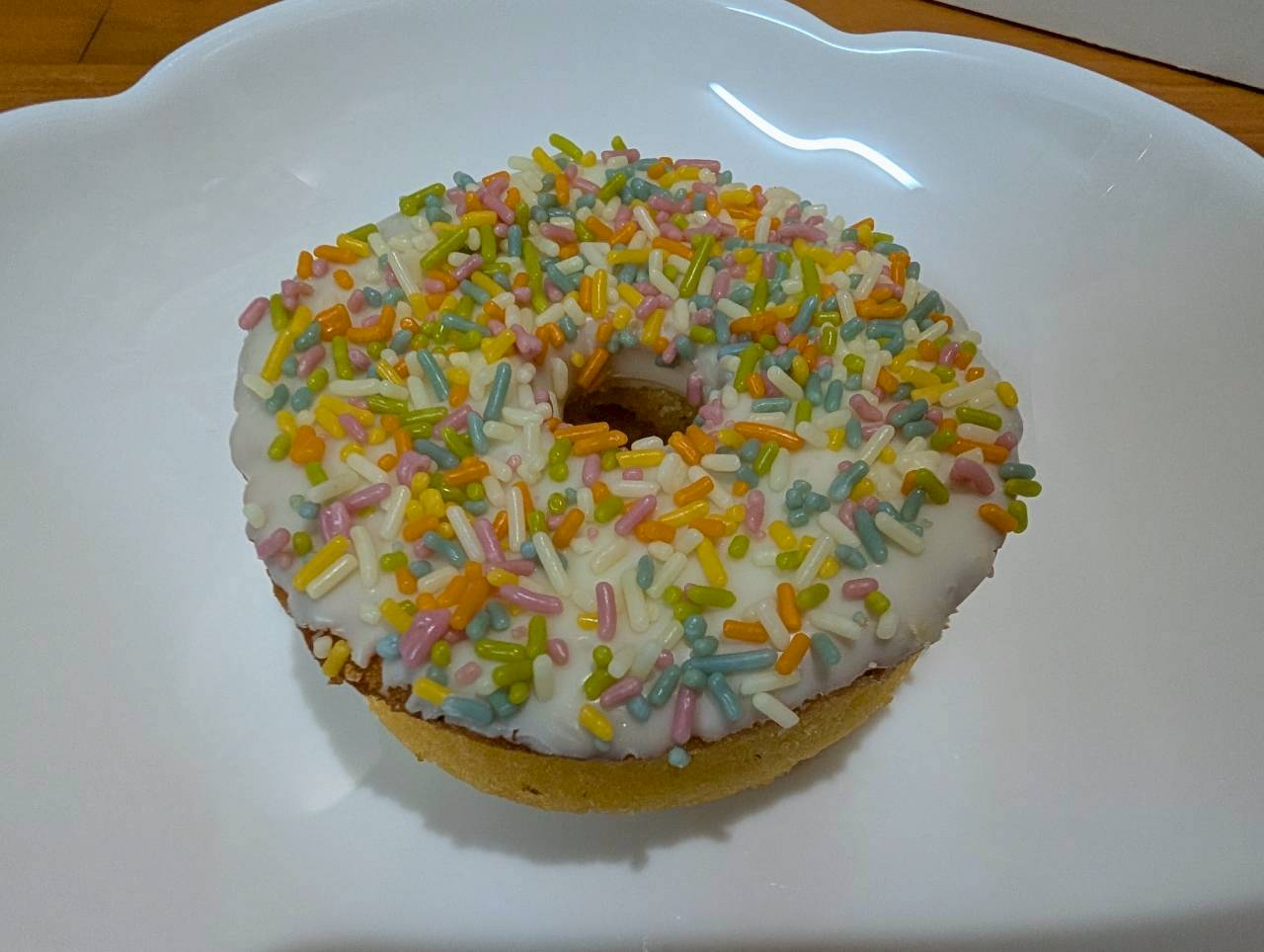 ホワイトチョコの上にチョコスプレーがトッピングされてます。