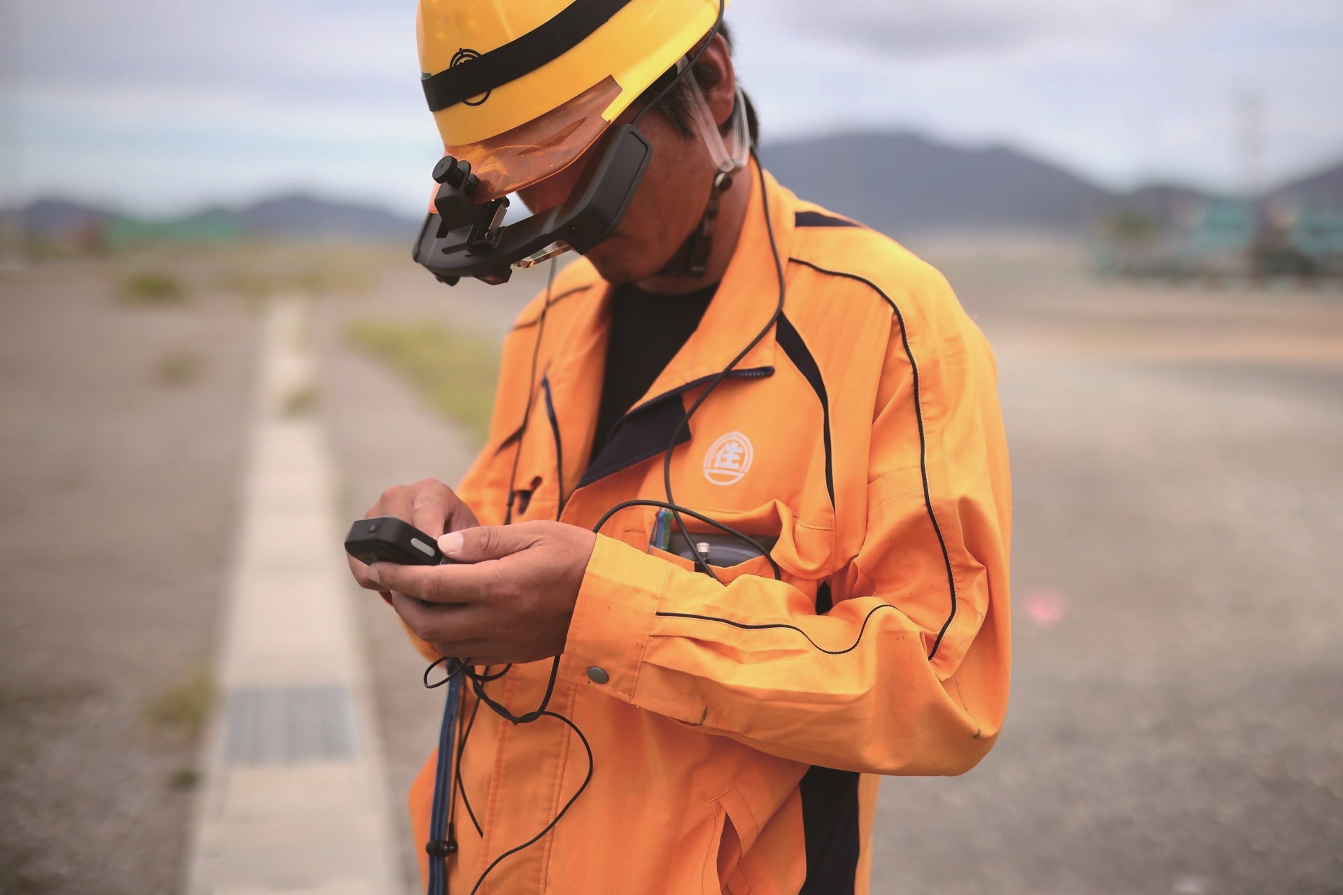 建設現場を遠隔で確認できる最先端の技術「スマートグラス」を活用しながら、建設スタッフとして施工管理の仕事を行います。