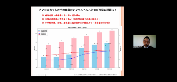 11月21日(金)、オンラインで行われた令和7年度第4回さいたま市立学校校長学校管理研修会において、本学の近江翼教授が「管理職による若手教職員のメンタルヘルス対策」をテーマに、さいたま市立小・中等教育・高等・特別支援学校校長167名を対象とした講演を行いました。