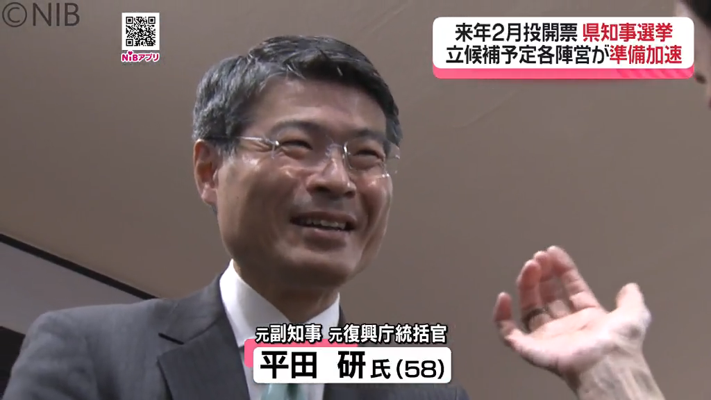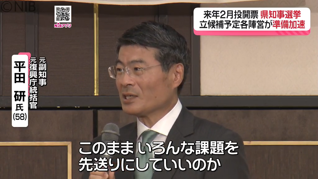 来年の県知事選挙に向けて11月29日、事務所開きを行ったのは元副知事で元復興庁統括官の無所属・新人、平田 研氏(58)です。