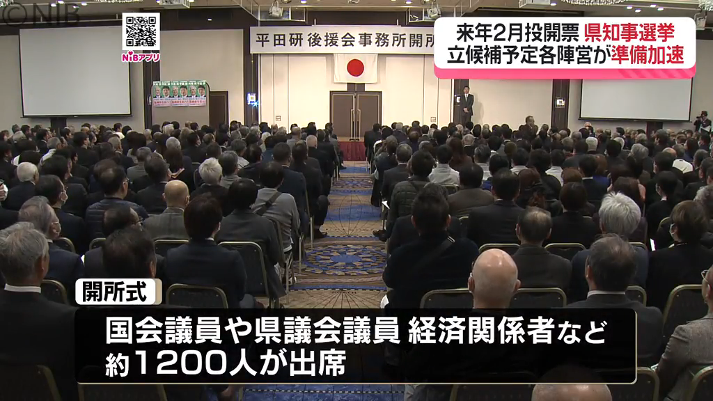 自民、国民民主、立憲民主の各党県連が推薦する方針で、開所式には国会議員や県議会議員のほか経済関係者など約1200人が出席しました。