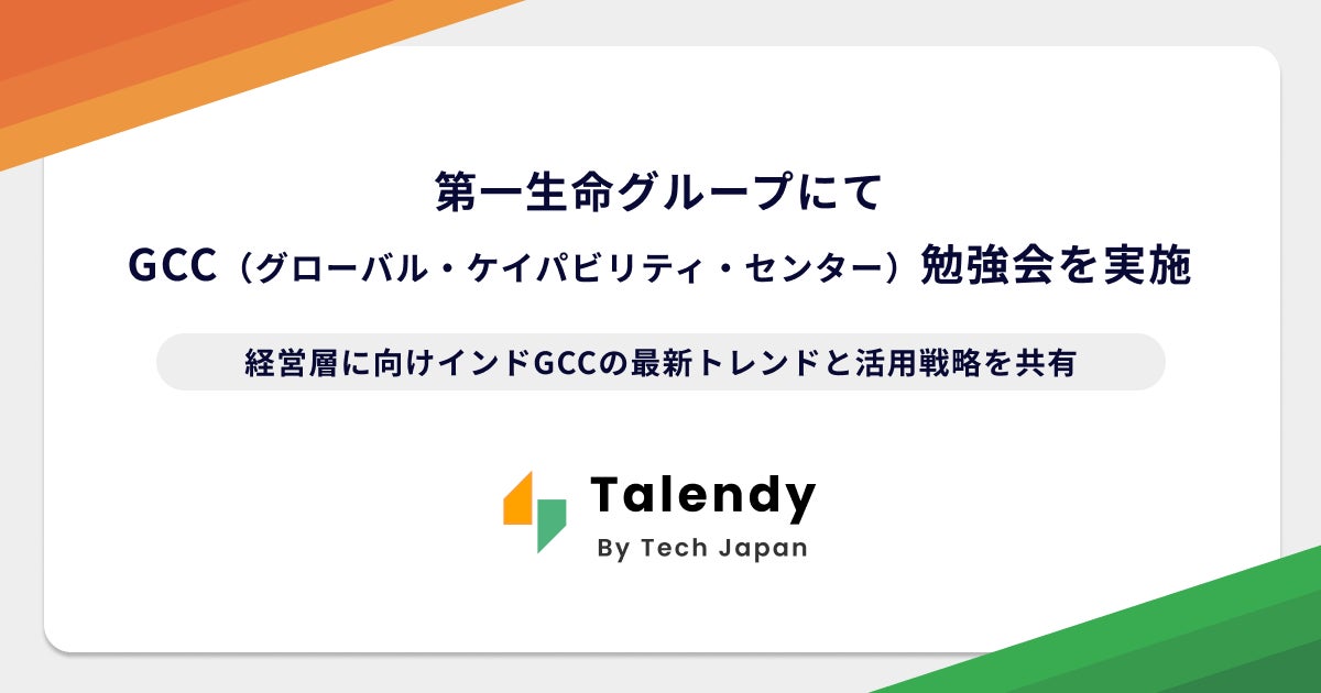 Tech Japan株式会社(本社:東京都、代表取締役 西山直隆)は、第一生命グループにおいて経営層を対象とした「グローバル・ケイパビリティ・センター(GCC)」に関する勉強会を2025年10月17日に実施いたしました。本勉強会は、グローバルDX推進の一環としてGCC構想を発表した同グループに対し、GCCの最新動向や高度人材の活用可能性について理解を深めることを目的としています。また、Tech Japanでは、経営層・役員向けに体系化した 「インドGCC理解促進プログラム」 の企業向け提供を開始します。