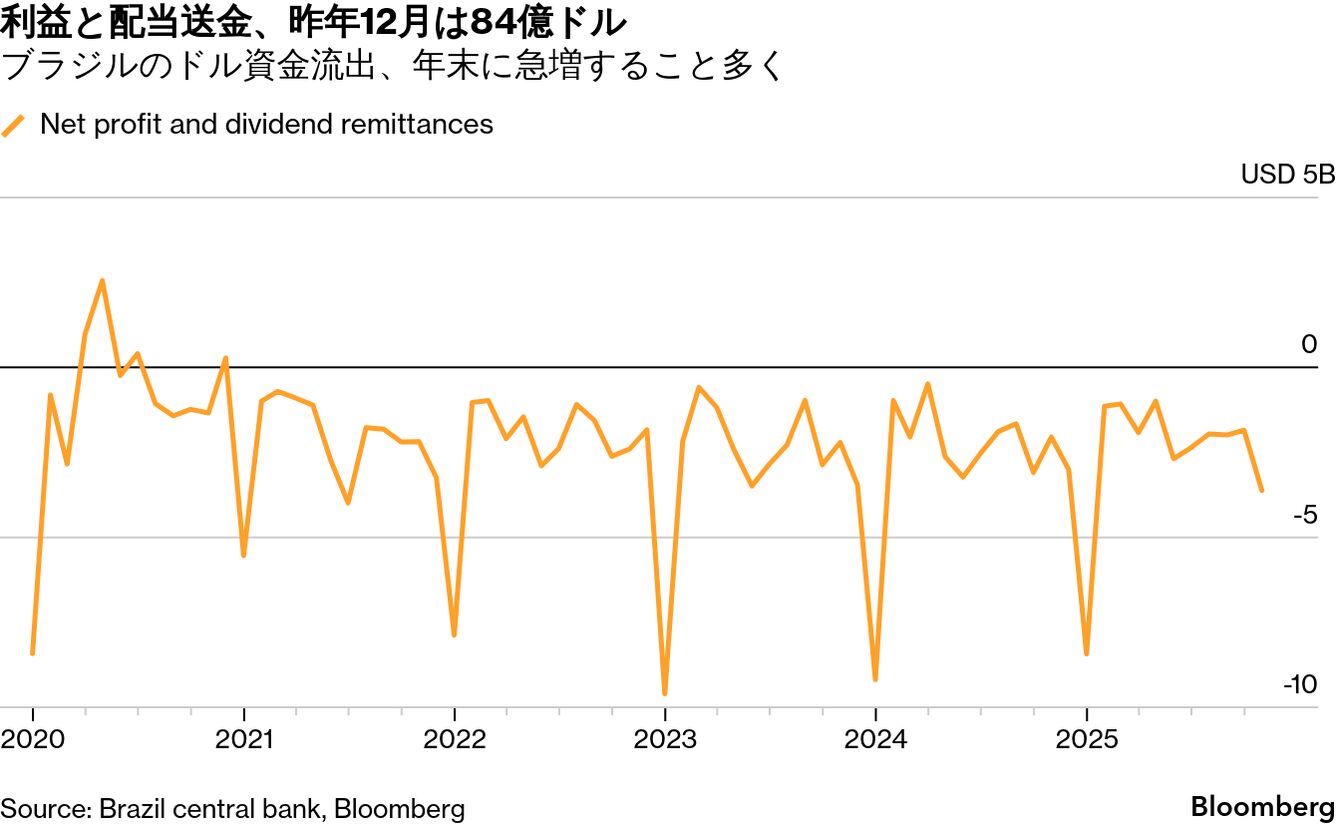 ブラジルでは12月に利益・配当の海外送金が最大100億ドル(約1兆5600億円)に達する可能性がある。レアル相場に再び下押し圧力がかかり、ブラジル中央銀行が新たな介入を迫られる可能性もある。